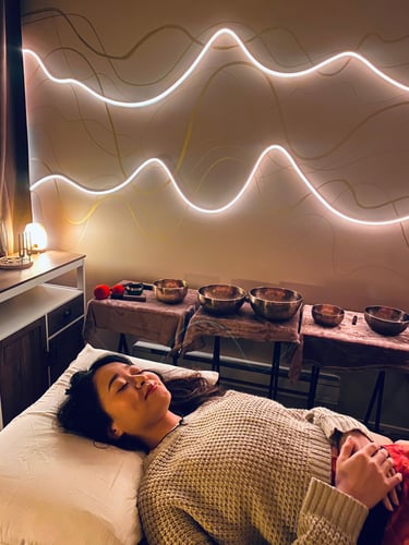 "Coming in I was feeling tense and anxious from my thoughts of the week and just my brain constantly on the go. Trying hard to calm down and take in the session. I tried to relax before coming but could still feel tense muscles in my shoulders and effects of a clenched jaw here and there. It was needed! As you eased into the sound bath, I was engulfed in the experience with the bowls on me, feeling immersed in the sound and the vibration of the bowls helped drain out all the noise and bring a sense of calm and rest. I found myself even lost in the moment a few times, drifting close to sleep but not quite there - just completely relaxed. My mind was quiet, still, forgot about the pains and tension. For the first time in a long time, I didn't feel the need to clench my jaw, my thoughts were clearer and I felt more centered. Can't explain how beneficial this is in helping tune out noise and feeling like I'm more grounded. Highly recommend for anyone dealing with stress and anxiety. The feeling in incomparable to any other therapeutic treatment and I love the feeling after. Looking forward to seeing you again 💖"